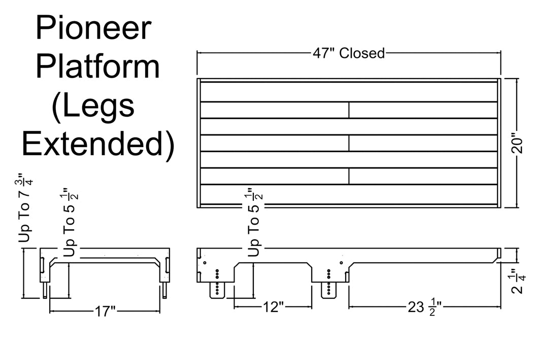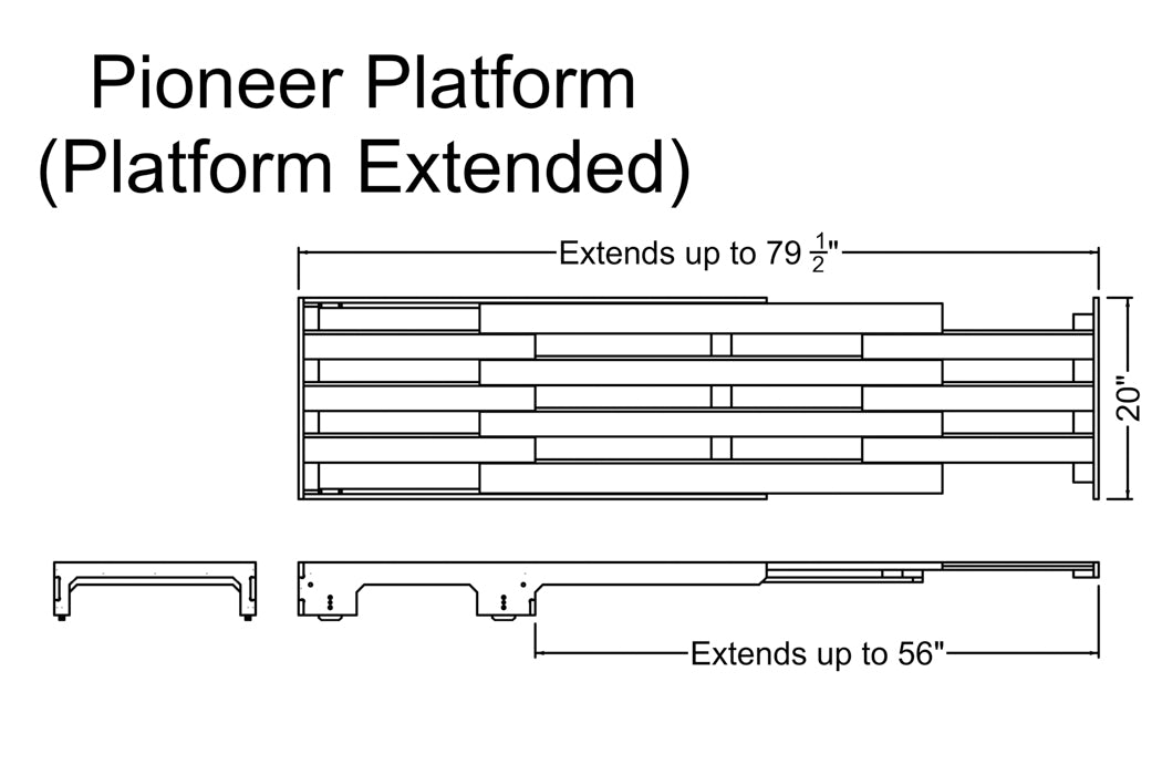 The Pioneer Platform’s adjustable height rests on your folded seats, and its telescoping length extends up to 80”, giving you extra sleeping space above your footwells. Its low-profile design maximizes headroom, while the lightweight yet durable construction ensures a lifetime of adventure. When not in use it packs up small for easy storage!