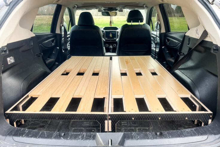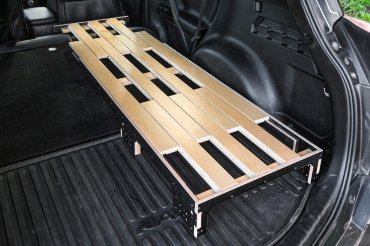 If you own a Hatchback, Wagon, or Crossover SUV and dream of cozy car camping adventures, the Pioneer Platform is here to make it happen! Most vehicles don’t have a level cargo space with the seats folded down, so we designed this adjustable platform to create a flat, comfortable sleeping surface in just about any car.