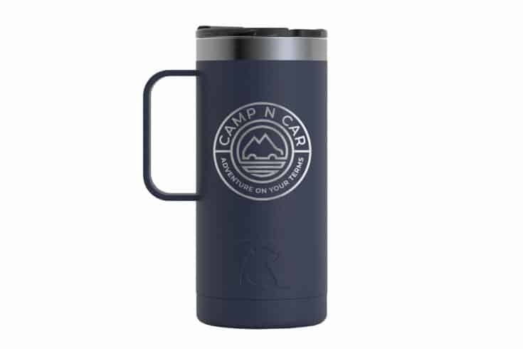 Is it even a road trip without the aroma of dark roast coffee? This double-walled 16 oz. stainless steel travel mug by Rtic features the Camp N Car logo and will keep your favorite beverage hot (or cold!) as you collect the memories of a lifetime.